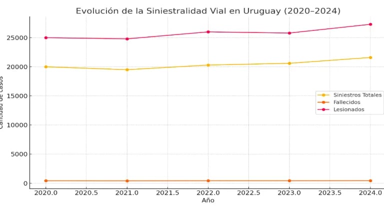 Estos valores representan un aumento del 2,8 % en muertes y 5,7 % en lesionados respecto al año anterior. La tasa de mortalidad vial alcanza los 12,1 fallecidos por cada 100.000 habitantes, una cifra estable que no mejora pese a la fiscalización intensiva.